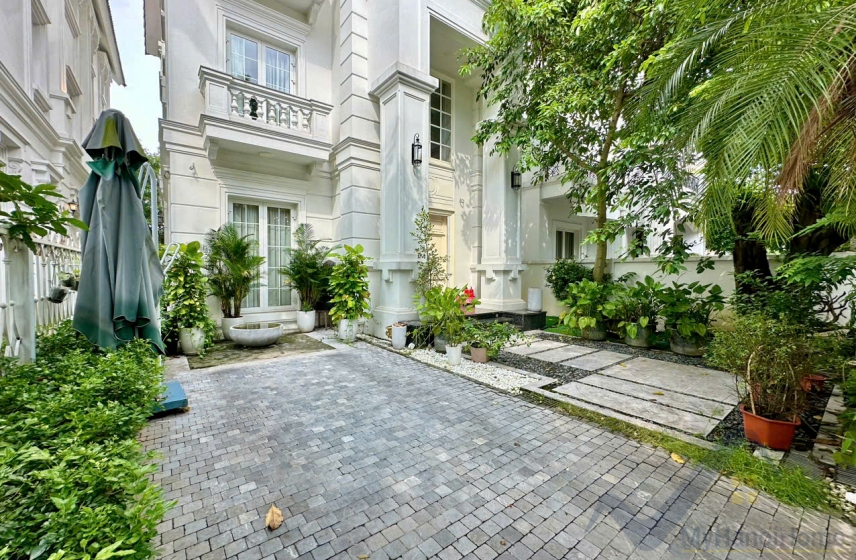 Chủ nhà có biệt thự song lập Vinhomes Riverside cho thuê khu Hoa Sữa, gần trường BIS và thiết kế gồm 4PN, view sông, sân vườn